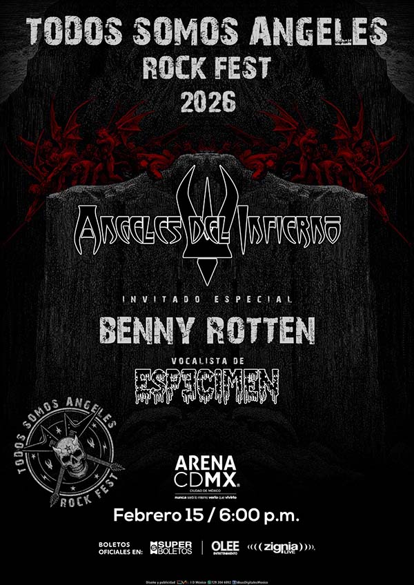 Todos Somos Angeles Rock Fest en su edición 2026 (México) tendrá como headliner a Angeles Del Infierno, y a las bandas Kabrönes, Saratoga, Trágico Ballet, Transmetal, Nightrise y Cemican.