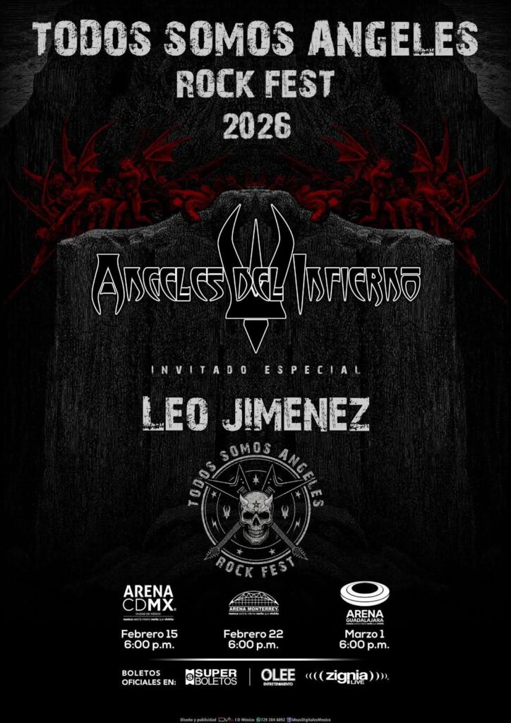 El Todos Somos Angeles Rock Fest 2026 México tendrá como headliner a Angeles Del Infierno, acompañados por un cartel potente que incluye a Kabrönes, Saratoga, Trágico Ballet, Transmetal, Nightrise y Cemican.